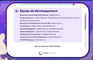 « Ces jeux sont les tout premiers que j’ai développés, les thèmes étaient imposés par l’école. Nous devions réaliser à la fois les graphismes et le code. J’ai pu profiter de mon expérience en design lors des deux premier projets, mais souhaitant plutôt me spécialiser en programmation, j’ai intégré l’équipe de développeurs pour Slime Slayer. Ce jeu a été notre tout premier jeu en équipe et sa réalisation a été pour le moins chaotique mais aussi très formatrice. »